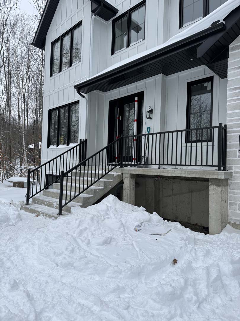 - Nos garde-corps et rampes d’escaliers empêchent le passage d’objet de 4po de diamètre;